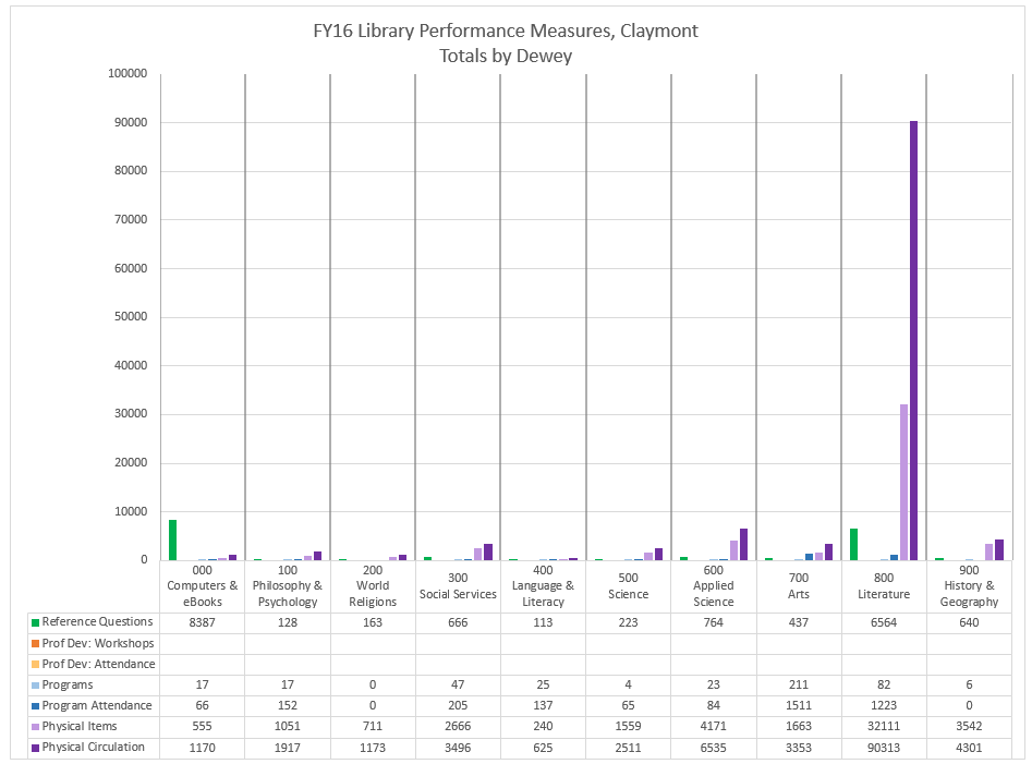 FY2016 Library Performance Measures - Totals of Each Measure by Dewey