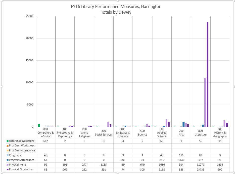 FY2016 Library Performance Measures - Totals of Each Measure by Dewey
