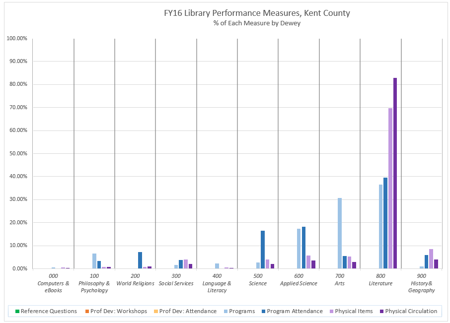 FY2016 Library Performance Measures - Percent of Each Measure by Dewey