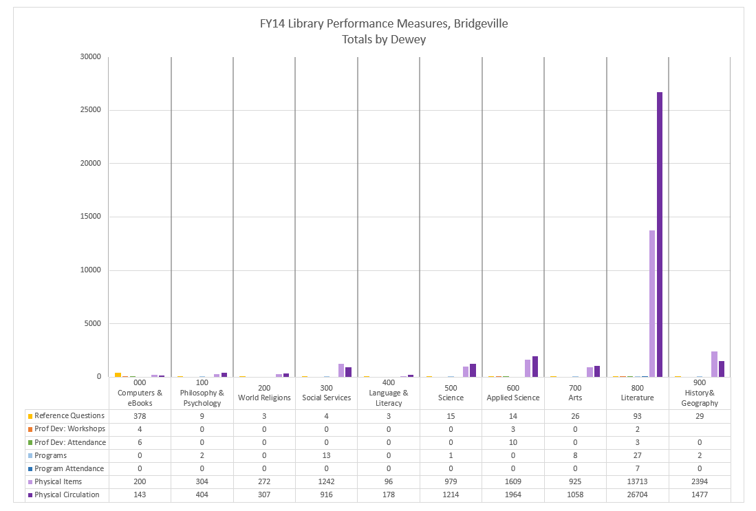 FY2014 Library Performance Measures - Totals of Each Measure by Dewey