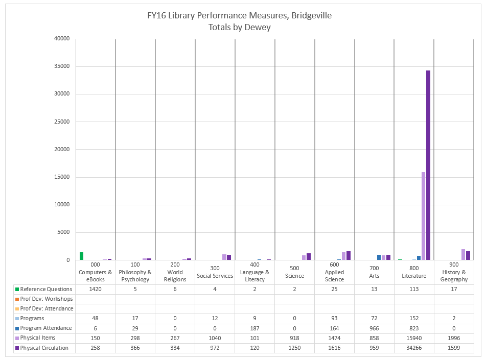 FY2016 Library Performance Measures - Totals of Each Measure by Dewey