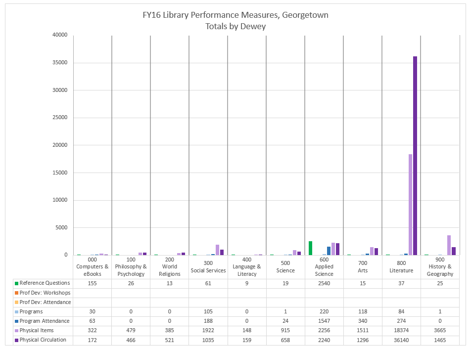 FY2016 Library Performance Measures - Totals of Each Measure by Dewey